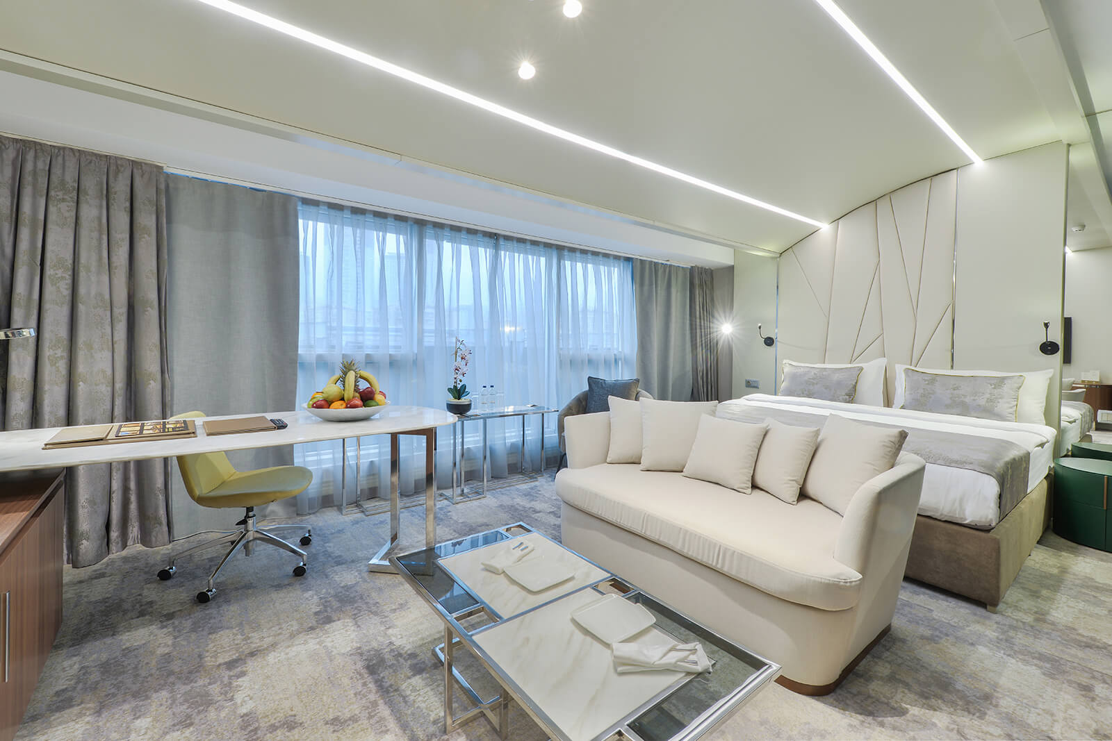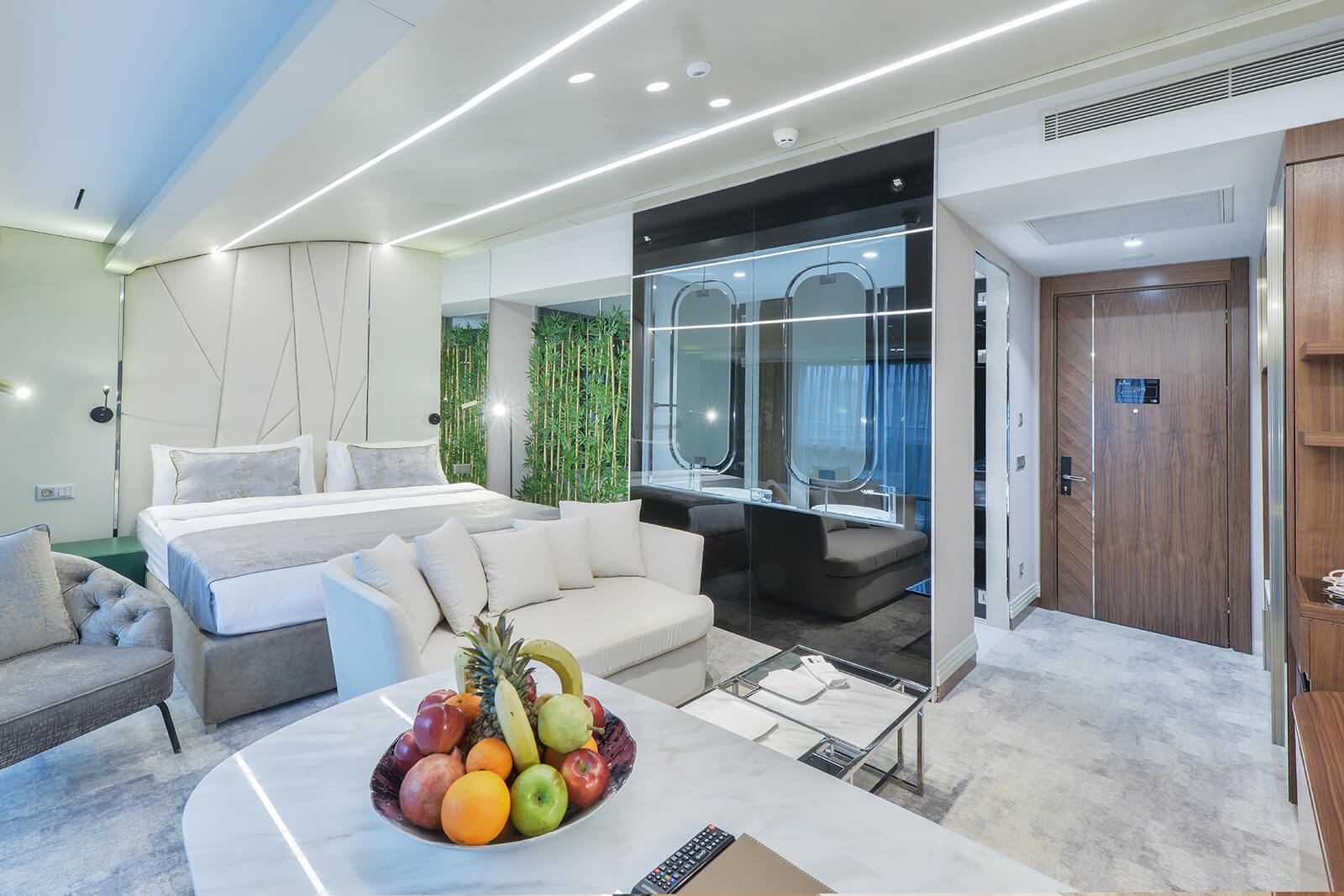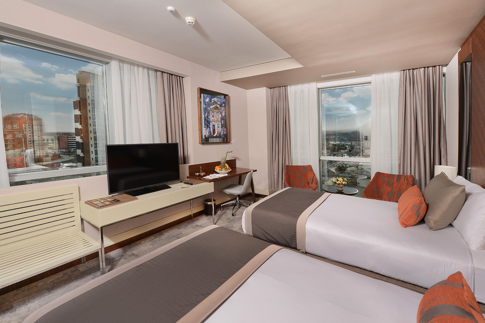 En son teknolojiyle donatılmış, ferah, konforlu ve ergonomik bir mimariyle dizayn edilmiş odalarının tümünde; 24 saat taze hava sirkülasyon sistemi, özel duş, wc, saç kurutma makinesi, minibar, klima, interaktif Smart TV, satelite uydu yayınları, odaya özel wifi ve emanet kasası gibi olanaklar yer almaktadır.